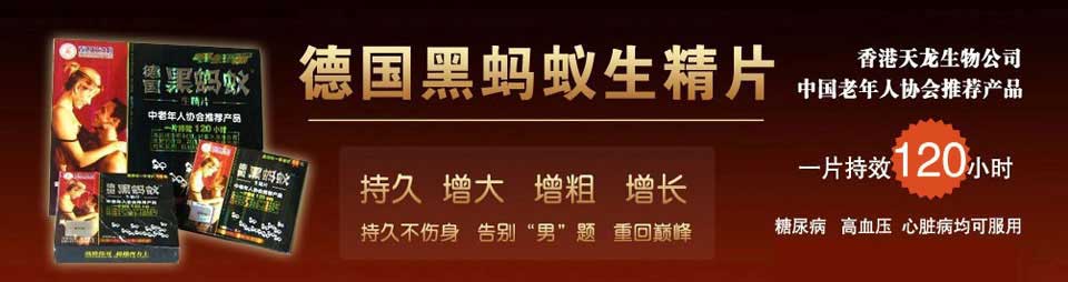 【主要成份】:藏紅花、冬蟲夏草、雪蓮花、雪鹿鞭、藏犛牛睾丸、海馬等。 【主治】:早洩、遺精、弱精、性功能障礙、性慾減弱、陰莖短小、腰膝酸痛、四肢無力、頭昏耳鳴、自汗賊汗、夜尿頻多、前列腺炎等腎虛引起的多種症狀。 【用法用量】:口服,臨睡前限服一片,本品用時需細嚼,用溫開水送服。 {房事前20-30分鐘內服用一片可見奇效}日常保健三日食用一片(三盒一個療程,徹底解決男性問題)。 【規格】:2000mg*6片*4小盒,共24片 【公司名稱】:中國香港天龍生物科技(國際)集團公司 【唔適宜人群】少年兒童、孕期及哺乳期婦女 【注意事項】: 1、不可急於求成,一次只能服一粒。 2、服葯後,如多次勃起或房事中久勃唔泄者,飲涼滾水解之。 3、24小時不得重複使用。